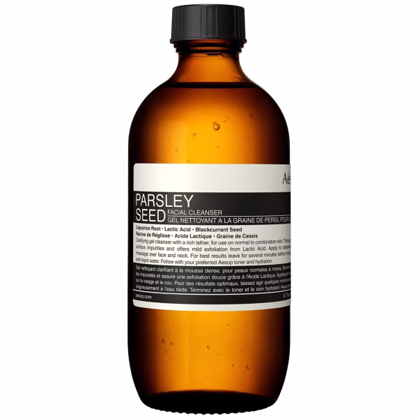 Aesop’s first gel cleanser in the Parsley Seed range offers gentle yet thorough cleansing, with the benefit of mild exfoliation from Lactic Acid and balancing from Jojoba Oil. The invigorating, rich lather of this innovative formula suits all skin types and leaves skin feeling completely cleansed, softened and clarified.